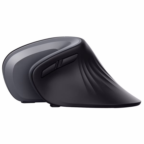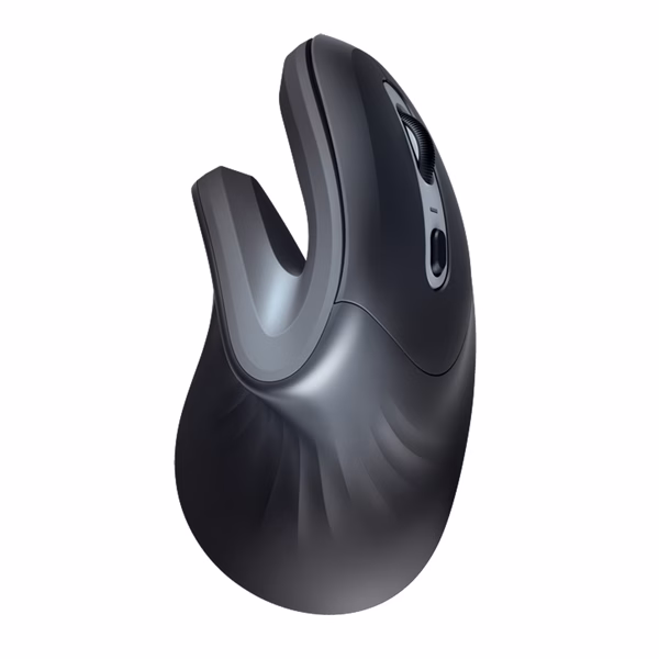 Mouse wireless con design ergonomico verticale. Funziona in pieno comfort per periodi prolungati, prevenendo al tempo stesso lesioni al braccio e al polso. Forma esclusiva, progettata per adattarsi a mani di ogni forma e dimensione. Leggero e sagomato in vista del comfort, con rivestimento in gomma per una presa perfetta. Angolo verticale di 60° per una posizione perfetta del polso. 2 pulsanti azionabili con il pollice: avanti e indietro nel browser. Pulsante di selezione velocità (600/1200/1600 DPI). Microricevitore USB riponibile. Portata segnale wireless: fino a 10 metri. Interruttore di accensione/spegnimento.