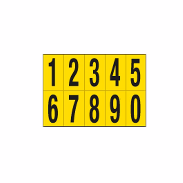 Numeri adesivi da 0 a 9 – in PVC – 70 x 124 mm – 10 et/fg – 1 foglio – nero/giallo