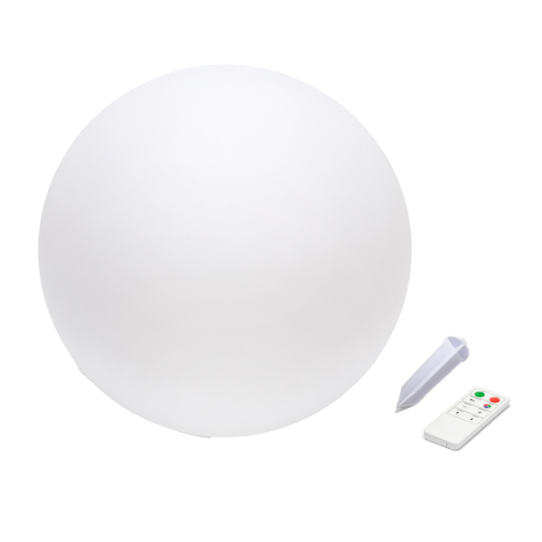 Sfera luminosa solare LED RGB. Tempo di ricarica da 8 a 12 ore in base all’intensità della luce solare. Autonomia 6 ore. 30 lumen, luce 3000K + RGB (7 colori). Durata Led 25.000 ore. Dimmerabile tramite telecomano incluso nella confezione. Grado di protezione IP66.