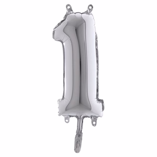 Palloncino – numero 1 – H 36 cm – mylar – argento – Big party