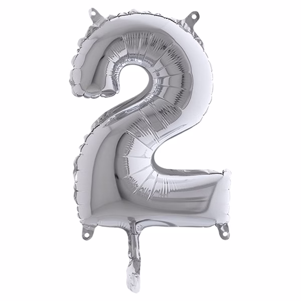 Palloncino – numero 2 – H 36 cm – mylar – argento – Big party