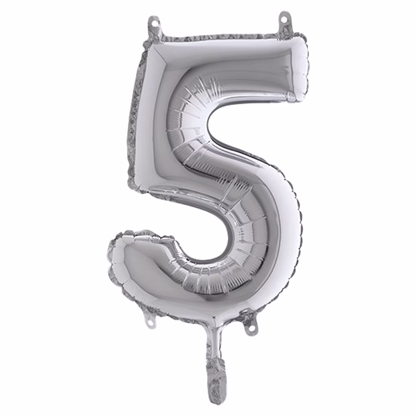 Palloncino – numero 5 – H 36 cm – mylar – argento – Big party