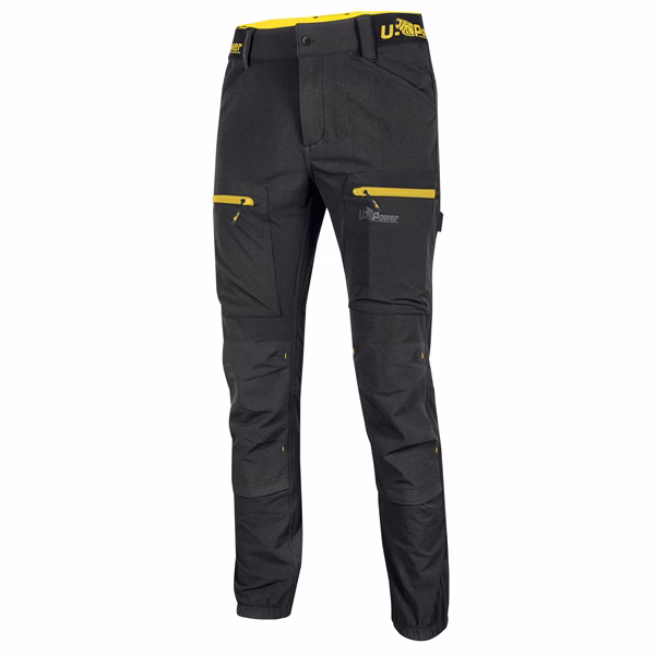“Pantaloni da lavoro stretch in tessuto U-4 con vestibilità jogging e inserti elasticizzati in vita e sul fondo per offrire una migliore vestibilità. Pantaloni da lavoro rinforzati con battitacco antiusura e carré posteriore accentuato per una maggior protezione della zona lombare. Il tessuto elasticizzato di questi pantaloni da lavoro comodi si muove nelle quattro direzioni simultaneamente garantendo grande libertà di movimento e comfort prolungato, inoltre è idrorepellente, traspirante e ad asciugatura rapida. Horizon è un pantalone uomo multitasche con bottone antigraffio che assicura grande funzionalità e praticità: due ampie tasche anteriori, due tasche multifunzionali frontali con cerniera, due tasche posteriori di cui una chiusa con zip e una con velcro, tasche porta ginocchiera, tasca porta-metro e fettuccia porta-martello.