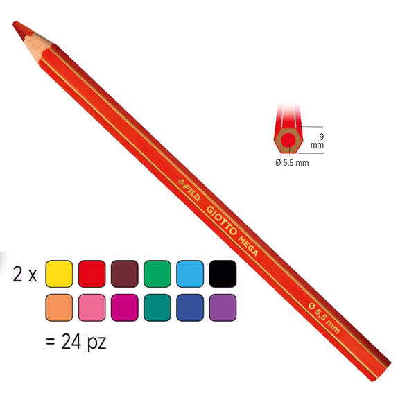 Pastelli colorati Mega – esagonale – diametro mina 5,5 mm – colori assortiti – Giotto – conf. 24 pezzi