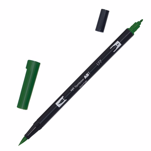 Marker Dual Brush Tombow. Due punte in fibra: sottile per tracciare linee precise, pennello per colorare ampi spazi. Inchiostro a base d’acqua, atossico, inodore, acid free. I colori non sbavano, possono essere miscelati e acquarellati tra di loro per crearne di nuovi.