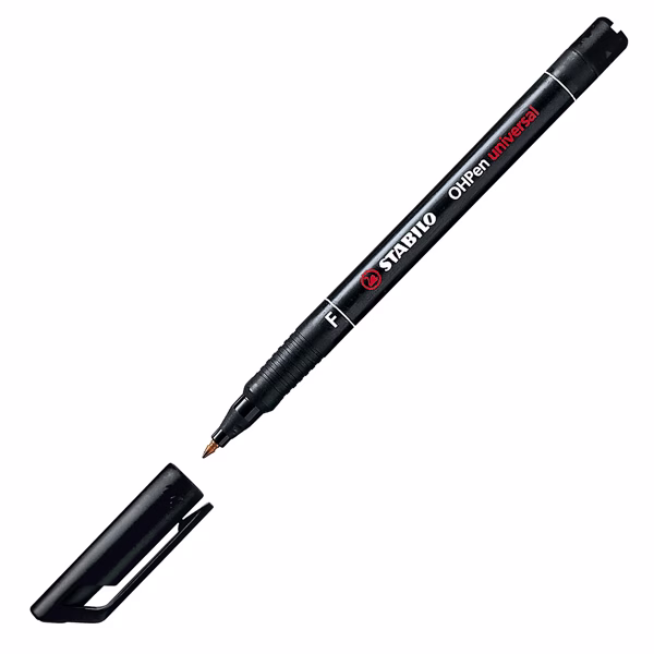 Pennarello indelebile con punta in fibra per superfici lisce, lucidi, CD-DVD. Resiste fino a 3 giorni senza cappuccio, senza che l’inchiostro si secchi. Scrive su quasi tutte le superfici. Impugnatura anti-scivolo e comoda clip. Fusto grigio per inchiostro cancellabile e fusto nero per inchiostro indelebile. Punta fine da 0,7mm. Colore: nero.