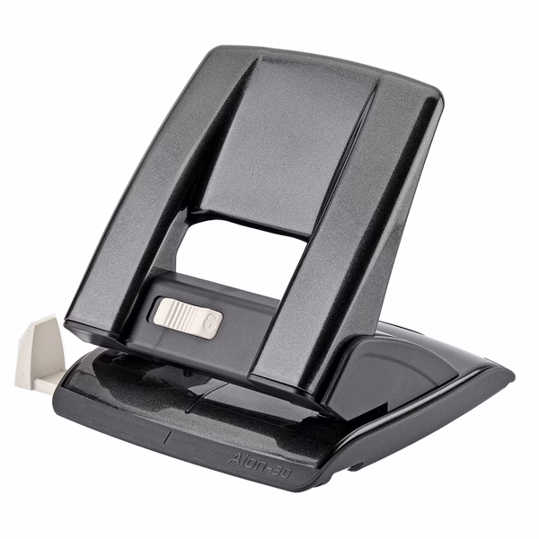 Perforatore a 2 fori in metallo con guida regolabile ed inserti in abs. Di robusta costruzione, consente di perforare fi no a 30 fogli con il minimo sforzo.Dotato di meccanismo di sicurezza e salva spazio (blocco/sblocco impugnatura). Pratico e veloce grazie al pulsante preposto posizionato sul fronte dell‘impugnatura.