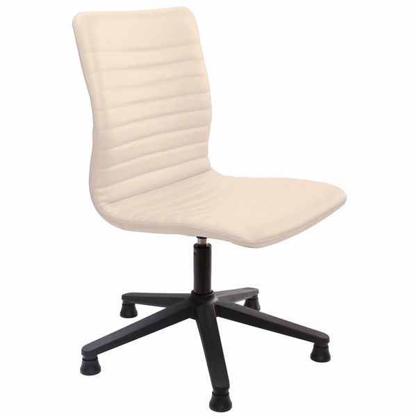 Poltrona direzionale girevole – sedile e schienale in multistrati di legno – elevazione a gas – meccanismo oscillante con blocchi. Rivestimento seduta in tessuto “PLUS – Eco Leather” idrorepellente, facile da pulire, senza flatati e flame retardant. Senza braccioli. Alt.tot.: 92-102cm; Prof.tot.: 70cm; Alt.schienale: 47cm; Larg.schienale: 50cm; Larg.seduta: 50cm; Prof.Sedile: 48cm; Altezza sedile: 44-54cm.