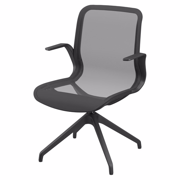 Poltrona direzionale girevole con schienale e seduta in rete. Meccanismo oscillante integrato nella struttura, base 4 gambe nylon. Schienale fisso. Poltrone serie Marilyn con schienale e sedile in rete, ultraleggere, sanificabili totalmente con la maggior parte dei prodotti presenti sul mercato. Ideali per allestire sale riunione confortevoli e attuali. Braccioli inclusi (non rimovibili). Altezza totale -> 95cm; Profondità totale -> 66cm; Altezza seduta –> 49cm; Larghezza seduta: 49cm (59cm c/bracc).