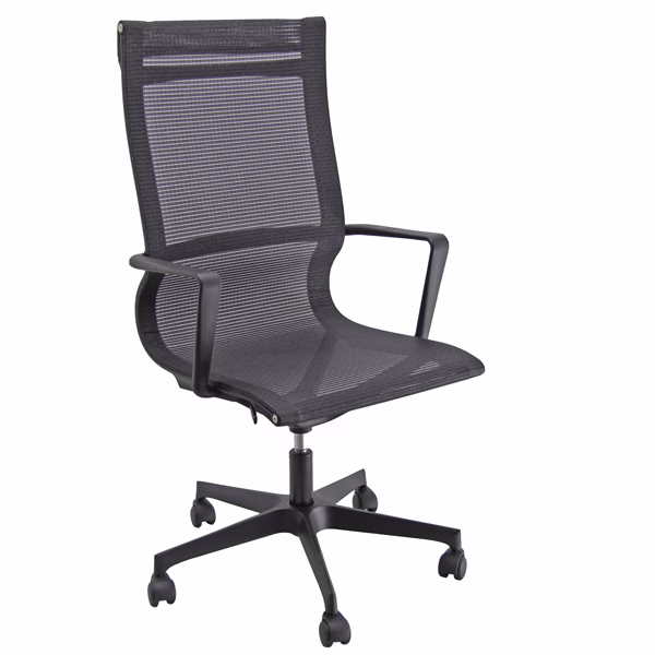 Poltrona direzionale girevole con elevazione a gas – meccanismo oscillante libero – schienale fisso in rete; Struttura integrale in nylon /poliammide, meccanismo oscillante libero e braccioli inclusi (non rimovibili). Alt.tot.:116-125cm; Profondità tot.: 68cm; Alt. schienale: 67cm; Larghezza schienale: 50cm; Larghezza sedile: 50cm; Profondità sedile: 49cm; Altezza sedile: 44-52cm.