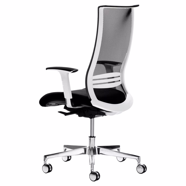 Seduta semidirezionale ergonomica girevole – elevazione a gas – meccanismo synchro autopesante – meccanismo a contatto permanente – dotata di supporto lombare regolabile – traslatore sedile; Rivestimento seduta in tessuto “FASHION – Chili” 75% poliestere ricilato e certificazione di infiammabilità 1IM UNI 9175 EN 1021. Completa di braccioli regolabili. Alt.tot.: 117-127cm; Prof.tot.: 68cm; Alt.schienale: 72cm; Larg.schienale: 45cm; Larg.seduta: 48cm; Prof.Sedile: 48cm; Altezza sedile: 42-53cm.