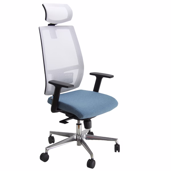 Poltrona semidirezionale Melania MAALPG – con braccioli regolabili e poggiatesta – celeste/bianco – Unisit