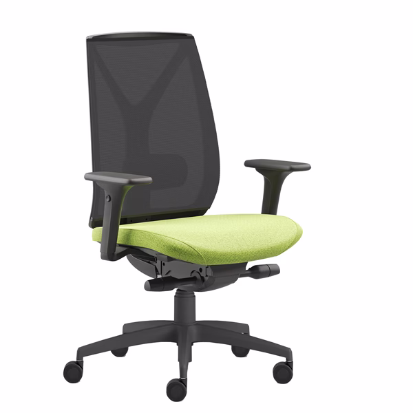 a contatto permanente – sedile dotato di traslatore e variatore di forza. Rivestimento seduta in tessuto “FASHION – Chili” 75% poliestere ricilato e certificazione di infiammabilità 1IM UNI 9175 EN 1021.Completa di braccioli regolabili. Alt.tot.: 103 – 115cm; Prof.tot.: 70cm; Alt.schienale: 50cm; Larg.schienale: 49cm; Larg.seduta: 53cm; Prof.Sedile: 48cm; Altezza sedile: 42 – 58cm.