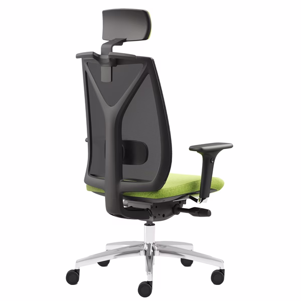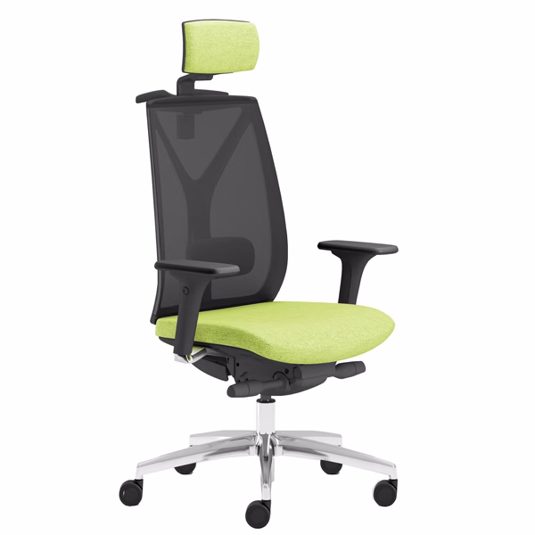 a contatto permanente – sedile dotato di traslatore e variatore di forza. Rivestimento seduta in tessuto “FASHION – Chili” 75% poliestere ricilato e certificazione di infiammabilità 1IM UNI 9175 EN 1021. Completa di braccioli regolabili e poggiatesta. Alt.tot.: 123 – 135cm; Prof.tot.: 70cm; Alt.schienale: 50cm; Larg.schienale: 49cm; Larg.seduta: 53cm; Prof.Sedile: 48cm; Altezza sedile: 42 – 55cm.