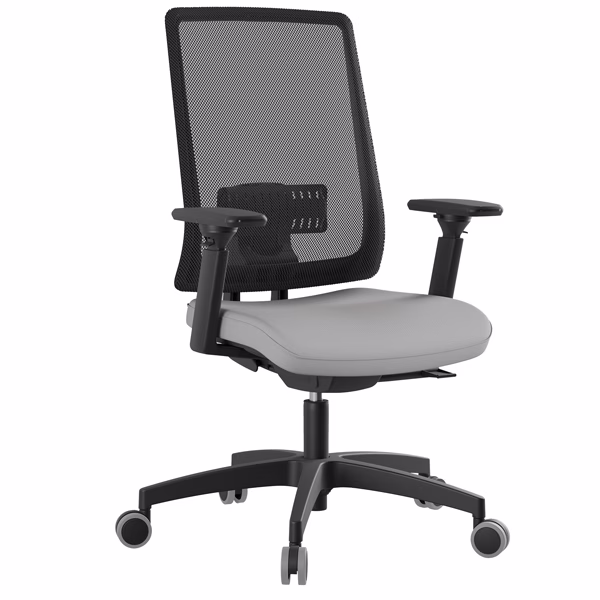 Seduta ergonomica, meccanismo synchro con controlli laterali e traslatore. Con braccioli regolabili. Con avanzato sistema di movimento AMS (Active Motion System) che garantisce grande comfort non solo da seduti ma soprattutto quando ci si rialza, anche dopo molte ore di lavoro in ufficio. Rivestimento in tessuto “FASHION – Salò” 100% Poliestere – Certificazione infiammabilità 1M.