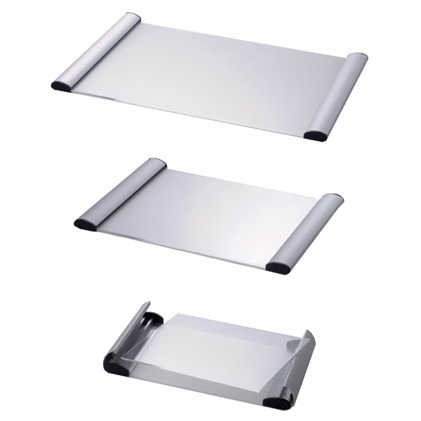 Realizzati in alluminio anodizzato e lastrine trasparenti. apertura a scatto per facile inserimento della targa. In dotazione biadesivo o tasselli da muro per fissaggio a parete.