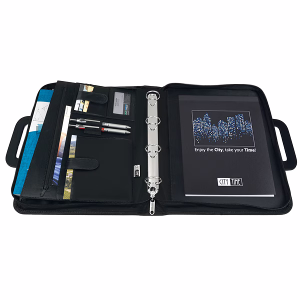 Portablocco – similpelle – c/anelli – nero – 28,5×36 cm – City Time