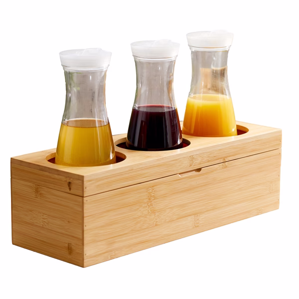 Portabottiglie con tre fori – 42 x15,5 x13 cm – bamboo – colore naturale – Leone