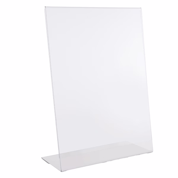 Display in PET trasparente (materiale riciclabile) idoneo al contatto con gli alimenti. Ottima resistenza agli urti e al fuoco. Ideale per ogni tipo di comunicazione e perfetto come porta menù o porta listino. Portadepliant con base a L utilizzabile sia in verticale che orizzontale. Formato A6 – 10,5x15cm – spessore 1,0mm.