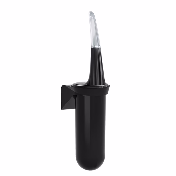 Portascopino per bagno da parete, comprende kit di montaggio per essere montato a muro facilitando così le operazioni di pulizia. In plastica riciclata. Dimensioni: 38,6 x 11,3 x 9,3cm. Modalità di fissaggio: Viti e tasselli/Biadesivo. Altezza di montaggio: 10-20cm.