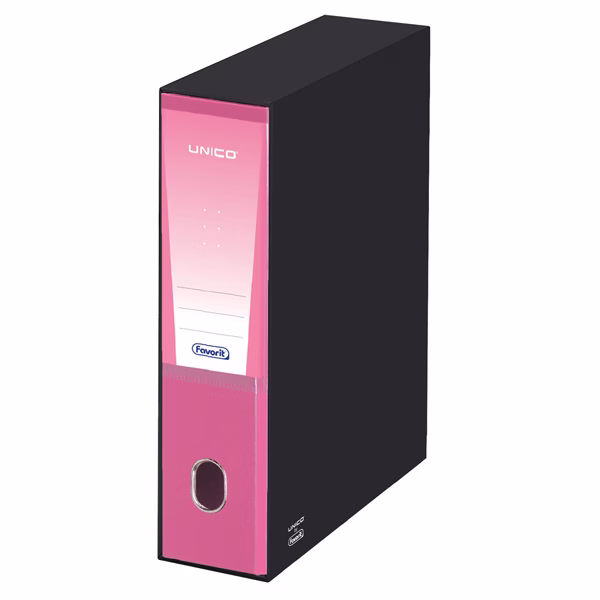 Registratore realizzato in naturene® (polipropilene) con anima in cartone da 2,2 mm. Custodia in cartone microonda accoppiato con carta stampata da 230 gr/mq. Meccanismo a leva interno e pressino in materiale inossidabile di elevata qualità. Occhiello ovale per l’estrazione e porta etichetta sul dorso, con etichetta personalizzabile tramite ElbaPrint, per garantire la massima praticità d’uso. Formato legale/protocollo (LxH) 23×33 cm. Dorso 8 cm. Colore rosa. Dimensioni esterne 28,5x35x9,5 cm. Made in Italy