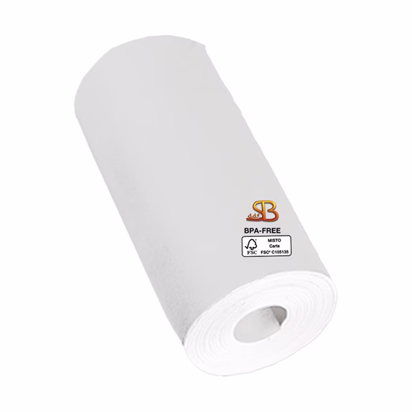 Tipo carta: termica Mitsubishi P5046 priva di bisfenolo A (BPA FREE), stabilità immagine 10 anni, certificata FSC.