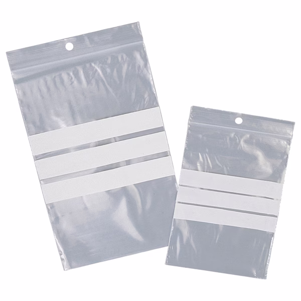SACCHETTI ZIP con bande scrivibili e foro