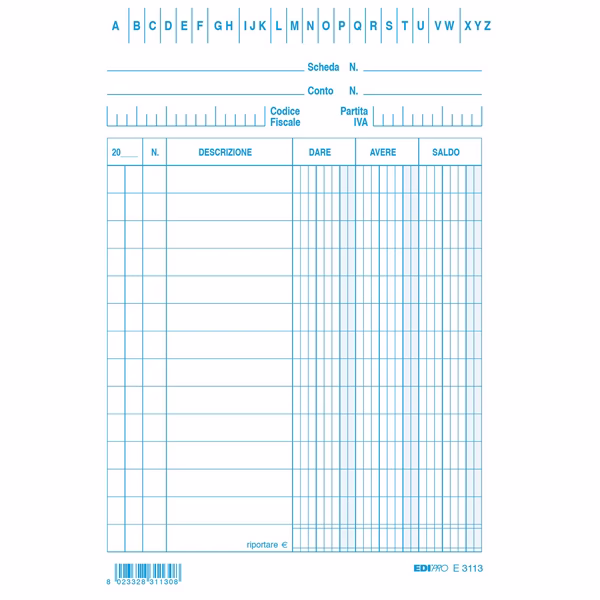 Schede dare/avere/saldo – 15 x 10,5 cm – blu – Edipro – conf. 100 pezzi