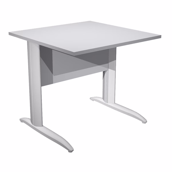 Scrivanie con dimensioni conformi alle normative sulla sicurezza dei posti di lavoro in ufficio. Bordatura dei piani in ABS 2mm antishock ed assenza di spigoli vivi. Le scrivanie sono disponibili nella versione con fianchi pannello in melaminico (sp. 22 mm) o con fianchi in metallo ad L verniciati effetto cromo o grigio alluminio RAL 9006, completi di piedini regolabili in altezza e canalina passacavi ispezionabile. Dimensioni: L80 x P80 x H72cm
