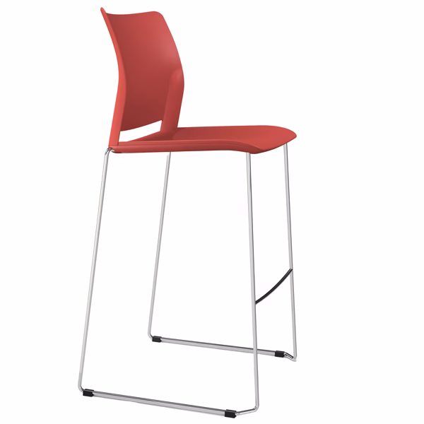 Seduta interlocutore 100% polipropilene su slitta in acciaio cromato – senza braccioli. Alt. tot: 111cm; Prof.tot: 54cm; Alt.schienale: 36cm; Largh.schienale: 48cm; Largh. sedile: 50cm; Prof.sedile: 44cm; Alt.sedile: 75cm. Certificazioni: EN 16139: 2013.