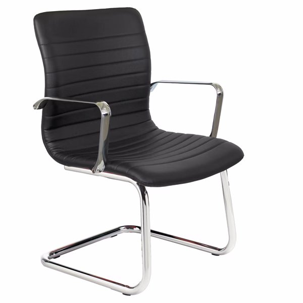 Seduta direzionale visitatore – sedile e schienale in multistrati di legno – base in acciaio cromato. Rivestimento seduta in tessuto “PLUS – Eco Leather” idrorepellente, facile da pulire, senza flatati e flame retardant. Braccioli inclusi (non rimovibili). Alt.tot.: 87cm; Prof.tot.: 60cm; Alt.schienale: 47cm; Larg.schienale: 43cm; Larg.seduta: 50cm; Prof.Sedile: 47cm; Altezza sedile: 41,5cm.