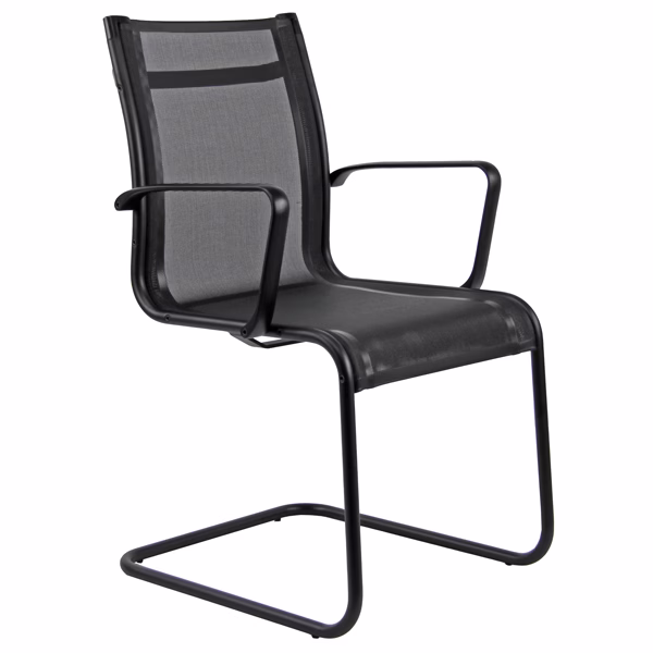 Seduta visitatore in acciaio cromato. Braccioli inclusi (non rimovibili). Rivestimento seduta in rete di colore nero. Alt.tot.: 89cm; Prof.tot.: 62cm; Alt.schienale: 41cm; Larg.schienale: 48cm; Larg.seduta: 50cm; Prof.Sedile: 50cm.