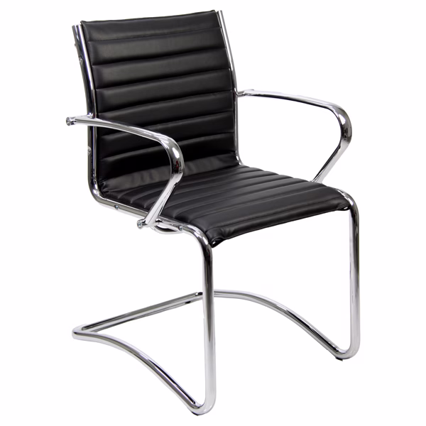 Seduta visitatore in acciaio cromato. Braccioli inclusi (non rimovibili). Rivestimento seduta in “TOP vera pelle smerigliata”. Alt.tot.: 89cm; Prof.tot.: 60cm; Alt.schienale: 41cm; Larg.schienale: 48cm;; Larg.seduta: 50cm; Prof.Sedile: 50cm; Alt. sedile: 46cm.