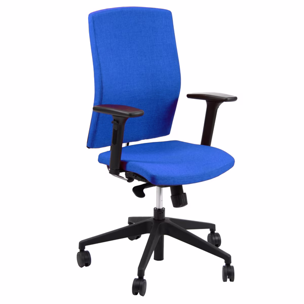 Seduta operativa girevole – elevazione a gas – meccanismo Syncro – 4 blocchi anti shock – meccanismo a contatto permanente – regolazione schienale up-down. Rivestimento seduta in tessuto “PLUS – Ignifugo standard” in fibra modacrilica e reazione al fuoco classe 1. Completa di braccioli regolabili. Alt.tot.: 114-125cm; Prof.tot.: 68cm; Alt.schienale: 60cm; Larg.schienale: 45cm; Larg.seduta: 46cm; Prof.Sedile: 46cm; Alt. sedile: 41-52cm.
