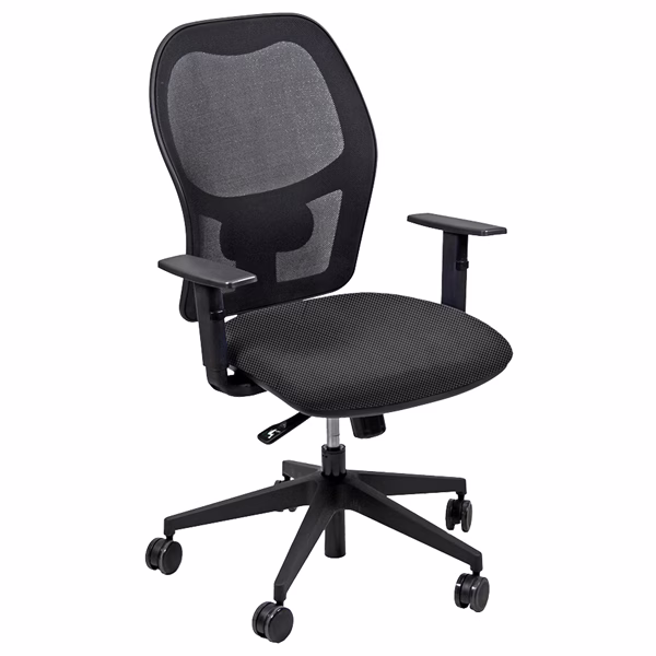Seduta operativa girevole con elevazione a gas, meccanismo syncro, 4 blocchi anti shock e meccanismo a contatto permanente. Schienale con supporto lombare regolabile. Completa di braccioli regolabili. Rivestimento in tessuto “FASHION – Go Couture” 100% TREVIRA e certificazione di infiammabilità 1IM. Alt.tot: 102-113cm; Prof.tot: 68cm; Alt.schienale: 60cm; Largh.schienale: 48cm; Largh.sedile: 48cm; Prof.sedile: 46cm; Alt.sedile: 42-54cm.