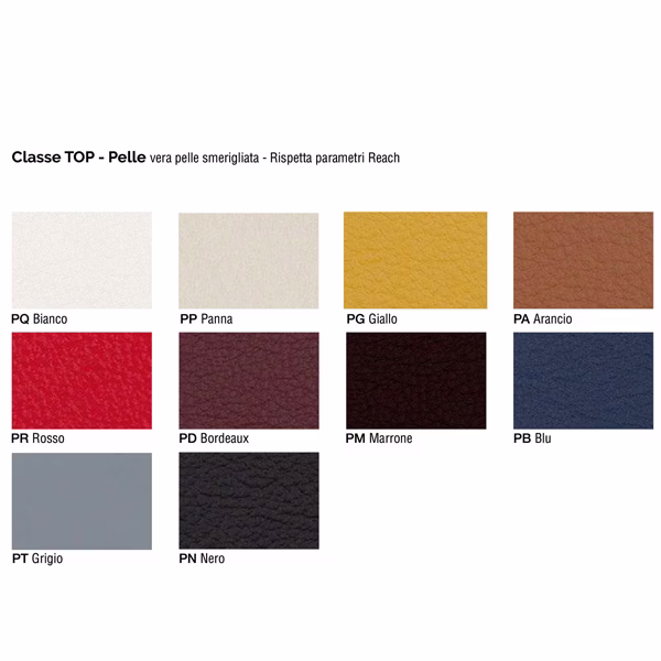 Rivestimento in vera pelle. Supporto lombare e schienale alto favoriscono il contatto permanente con il corpo per una seduta confortevole. Braccioli inclusi.