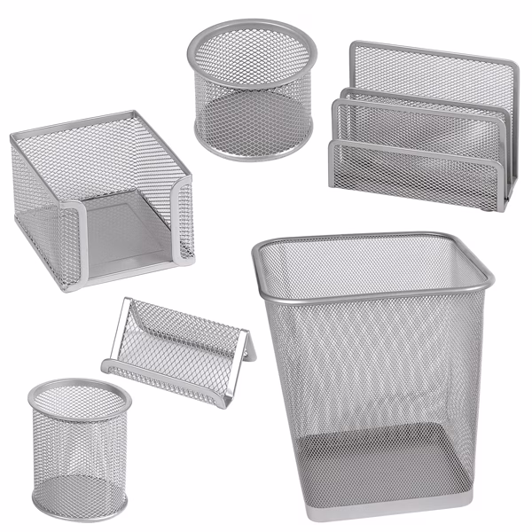 Set scrivania – 6 accessori – rete metallica – argento – Lebez