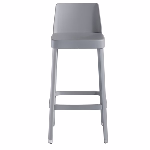 Sgabello alto 100% polipropilene – struttura in acciaio tubolare sezione ovale – senza braccioli. Alt. tot: 95cm; Prof.tot: 43cm; Alt.schienale: 22,5cm; Largh.schienale: 38cm; Largh. sedile: 38cm; Prof.sedile: 37cm; Alt.sedile: 75cm.