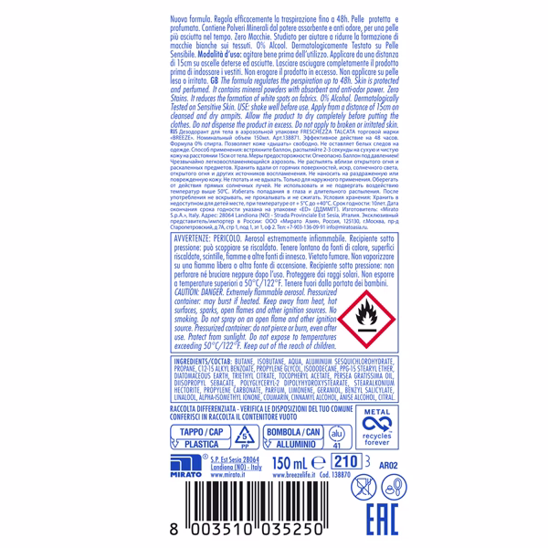 Spray deodorante Breeze – freschezza talcata – 150 ml – Gaia