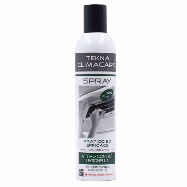 Spray disinfettante per apparecchi di climatizzazione. Presidio Medico Chirurgico attivo su Legionella, batteri ed i funghi. Appositamente formulato per la disinfezione di apparecchi di climatizzazione, split e pompe di calore, esso agisce direttamente sui microrganismi responsabili di numerose patologie respiratorie. Usato regolarmente previene il pericolo della contaminazione microbica all’interno dell’impianto e quella successiva degli ambienti. Non danneggia i materiali – plastica – resine – metalli – collanti speciali. Non macchia. Attivo sulla famiglia dei Coronavirus. Test eseguiti da laboratorio EU accreditato. Bombola da 400 ml.