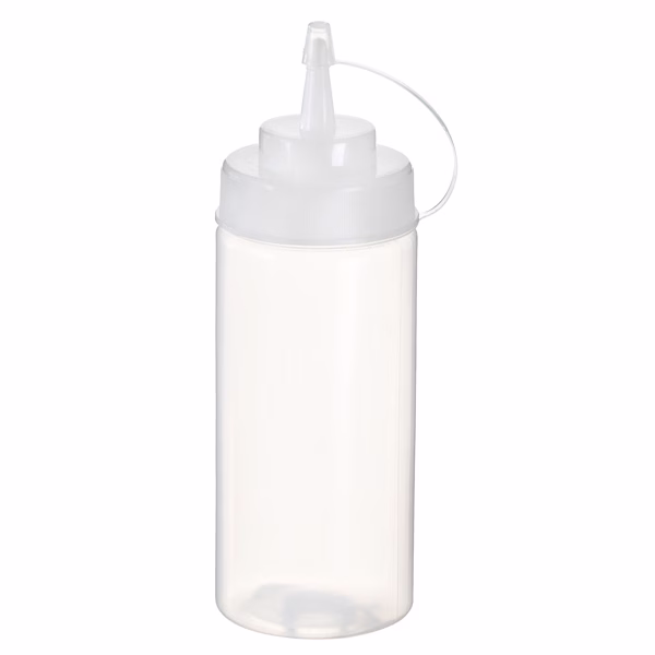Squeeze Bottle in polietilene trasparente con tappo 500ml/16oz. PE/PP Politene/polipropilene, idoneo al contatto con tutti gli alimenti Lavabile in lavastoviglie Prodotto da non utilizzare unitamente all’alimento nel forno tradizionale e microonde.