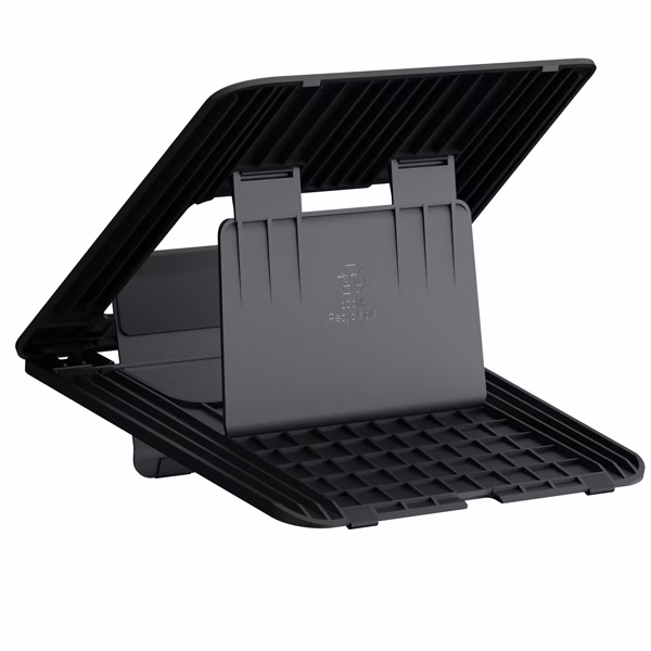 Dodici regolazioni di altezza con gambe frontali ripiegabili per ottimizzare la posizione dello schermo di qualunque laptop.Sostiene laptop fino a 14’’ e di peso massimo di 4kg.Materiali 100% riciclabili e con garanzia limitata 5 anni.Dimensioni prodotto;1.40 x 23.50 x 26.80