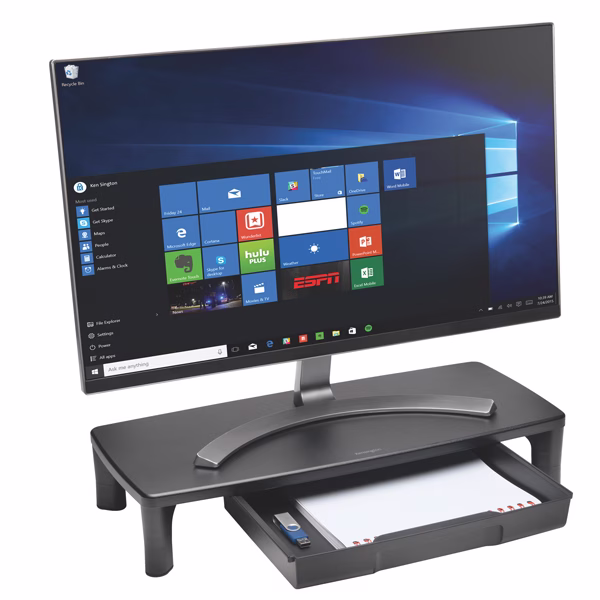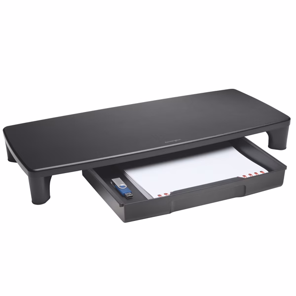 Il supporto per monitor SmartFit® con cassetto di Kensington combina la perfetta ergonomia di un sollevatore per monitor regolabile con il vantaggio di disporre di maggiore spazio di archiviazione nella scrivania. Grazie alla tecnologia brevettata di SmartFit che garantisce una corretta posizione, il supporto solleva il monitor a un’altezza ottimale per la vista, favorendo così una postura sana e un aumento della produttività. Il cassetto portaoggetti consente di organizzare gli accessori da scrivania, comprese penne, spillatrici e caricabatterie. Il supporto per monitor SmartFit con cassetto è un sollevatore per monitor professionale 2 in 1 pensato per uffici moderni che hanno come priorità il benessere dei dipendenti. Supporta iMac, PC all in one e monitor esterni fino a 30” e 15 kg (33 lb).