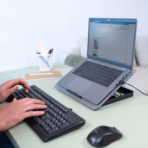 Altezza regolabile 8 scalini – fino a 145 mm – per un’ergonomia ottimale. Ampia ventola da 180 mm per il massimo raffreddamento.Migliora le prestazioni del tuo laptop tenendolo sempre fresco. Velocità ventola regolabile con modalità “Silent” o “Performance”.silenzio o prestazioni, quando vuoi.Piastra superiore in alluminio perforata per un look elegante e un flusso d’aria ottimale.Compatibile con qualsiasi laptop fino a 16”