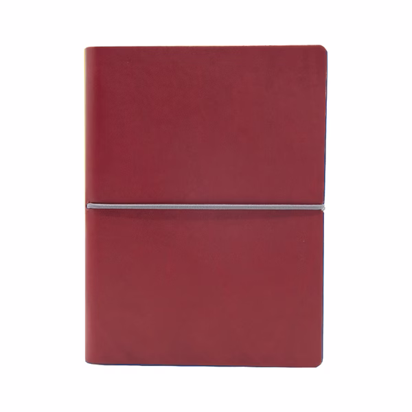 Taccuino con copertina in sintetico effetto liscio. Morbida, resistente e flessibile. Chiusura con elastico orizzontale. Carta riciclata colore avorio. Fatto a mano in Italia.