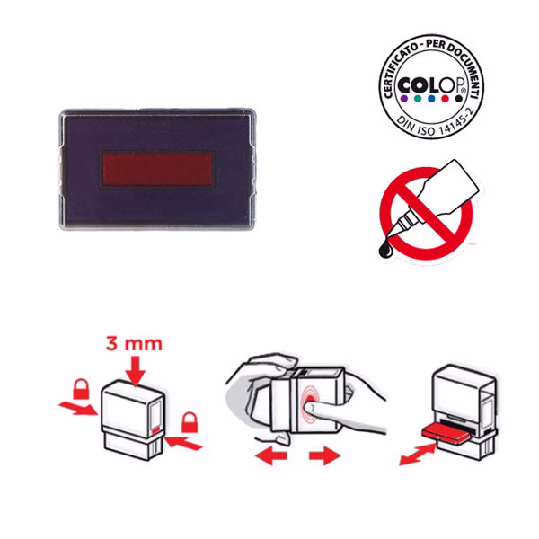Cuscinetto inchiostrato di ricambio per timbri Colop, facile da sostituire grazie al sistema pop-out/snap-in. Una volta esaurito il cuscinetto deve essere sostituito, non Þ idoneo ad essere reichiostrato. Confezione da 5 pezzi.