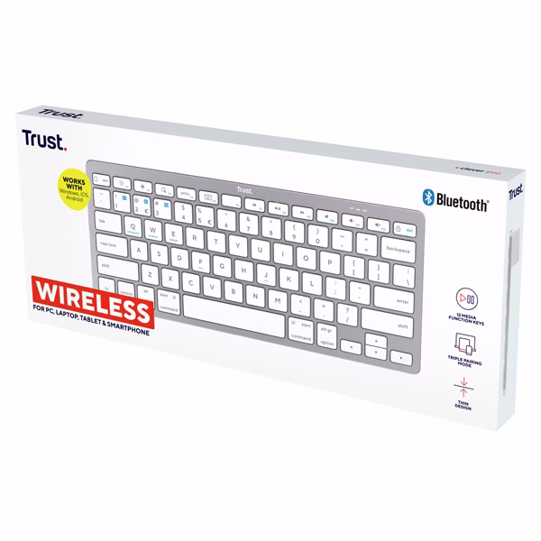 Design ultrasottile e leggero – Triplo pairing: per collegare fino a 3 dispositivi e commutare con semplicità tra uno e l’altro – Tasti isolati a profilo ribassato, di eccezionale sensibilità (scissor type) – Fino a 12 tasti funzione multimediali, accessibili direttamente grazie ai tasti di selezione del sistema operativo* – Bluetooth 4.0, portata segnale wireless: 10 metri – Interruttore di accensione/spegnimento – i tasti funzione variano in base al sistema operativo.