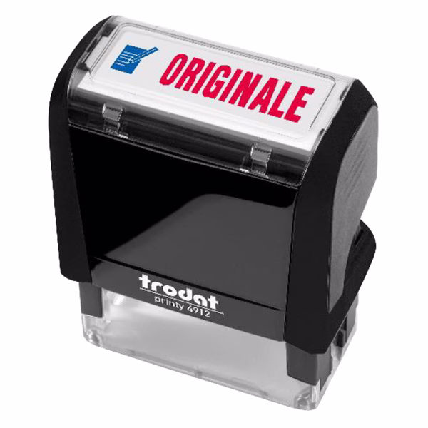 Timbro autoinchiostrante in materiale plastico riciclato al 65%. Impronta bicolore con scritta ORIGINALE. Piastra da 47x18mm. Tampone ricambio 6/4912-2. Packaging in cartone riciclato.
