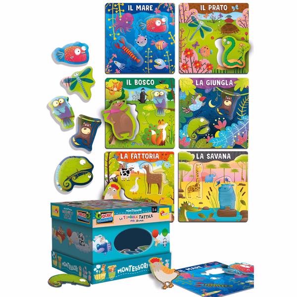 Gioco in scatola con lettere sagomate. Le letterine sono nascoste alla vista per cui il bambini, mettendo la manina nell’apposito foro, cerca le forme nella scatola usando il tatto. Questo gioco è in linea con il metodo Montessori perchè stimola l’esercizio della memoria tattile. Età consigliata 3-6 anni.