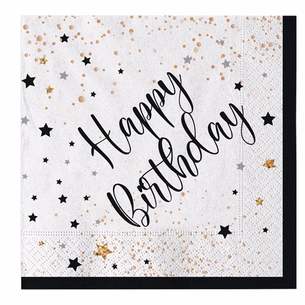 Tovaglioli in carta con scritta Happy Birthday. Dimensioni: 33x33cm